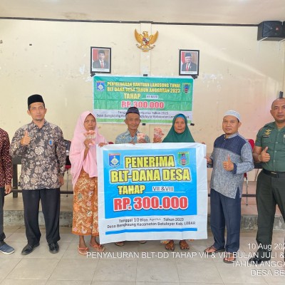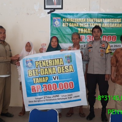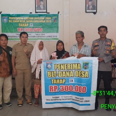 Bantuan di serahkan langsung oleh Kepala Desa Bengkaung H. Faizul bayani. m.pd yang di dampingi oleh camat batulayar Afgan kusumanegara, Babinsa Desa Bengkaung, Kaur keungan. Bantuan tersebut di serahkan kepada 30 kepala kelurga ( KPM ) Se Desa Bengkaung, Bantuan langsung tunai yang di serahkan berupa uang sebesar Rp. 600.000.00 selama 2 bulan yakni bulan Juli dan Bulan Agustus tahun 2023.