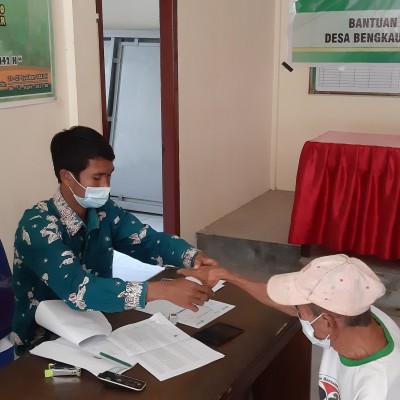 Kades Bengkaung H.Faizul serahkan Bantuan Langsung Tunai (BLT) atau Bantuan covid-19 kepada warga Desa Bengkaung, Penyerahan BLT DI Serahkan langsung oleh kepala Desa Bengkaung, Dan saat penyerahan BLT Kades Bengkaung di dampingi langsung dari pihak kecamatan, yakni kasi Kesos. Dan Pendamping Desa Bengkaung, Babinsa Desa Bengkaung Dan Babinmaspol.