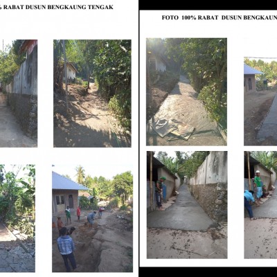 Realisasi pembangunan rabat jalan di lingkungan Dusun Bengkaung Tengak Desa Bengkaung dari Dana Desa APBDes 2019 dengan estimasi anggaran Rp 17,562,000,- dan realisasi pengerjaan Rp 17,033,000,-