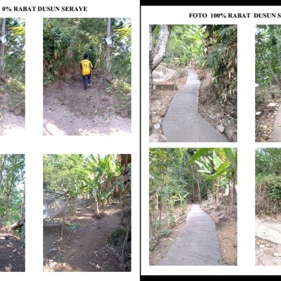 Rabat jalan yang sudah di kerjakan di dusun seraye Memiliki panjang 150 M, Lebar 125 CM, Dan Tinggi 10 Cm. dan biaya yang di anggarkan ialah sebesar Rp. 24.000 000.00.