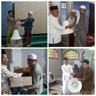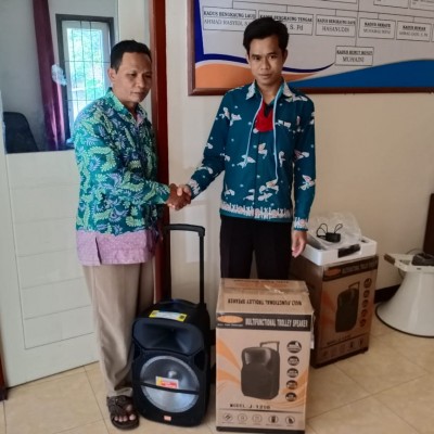 PENYERAHAN WIRELESSS SPEAKER OLEH PEMERINTAH DESA KE KETUA KELOMPOK MAJLIS TAKLIM DI DUSUN SERAYE DESA BENGKAUNG
