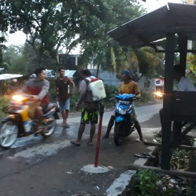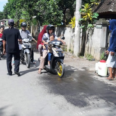 Guna Mengatisipasi penyebaran virus covid 19 Pemerintah Desa Bengkaung Mengadakan Penyemprotan Cairan Disinpektan di pintu masuk Desa Bengakung, Penyemprotan yang dilakukan setiap hari mulai dari pagi sampai sore.